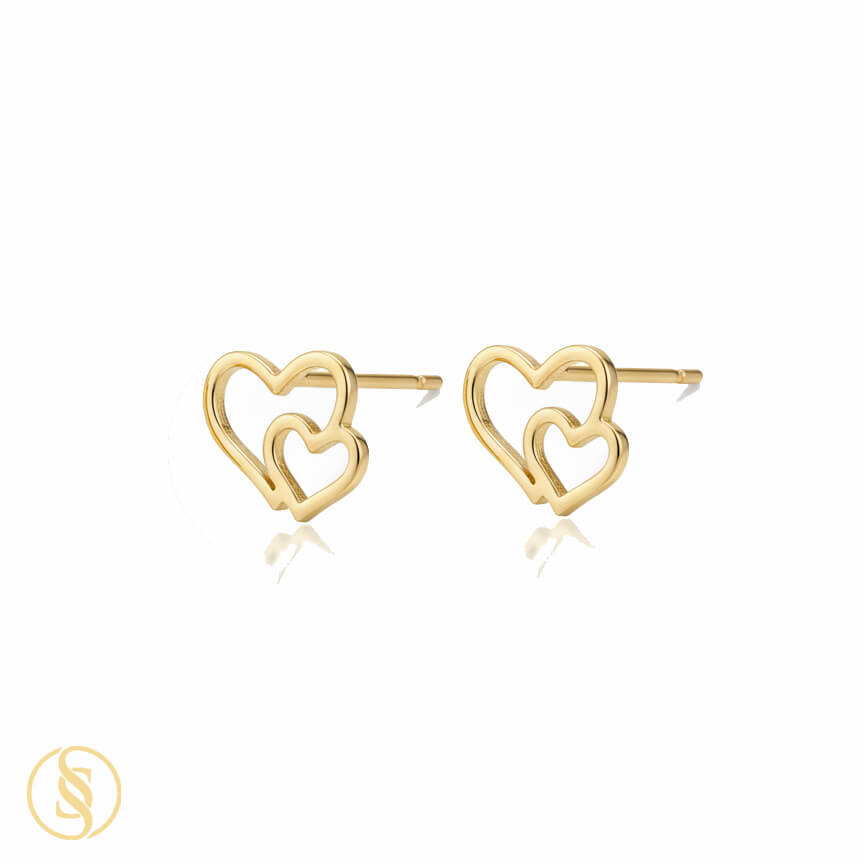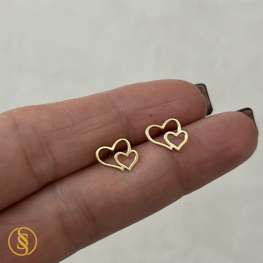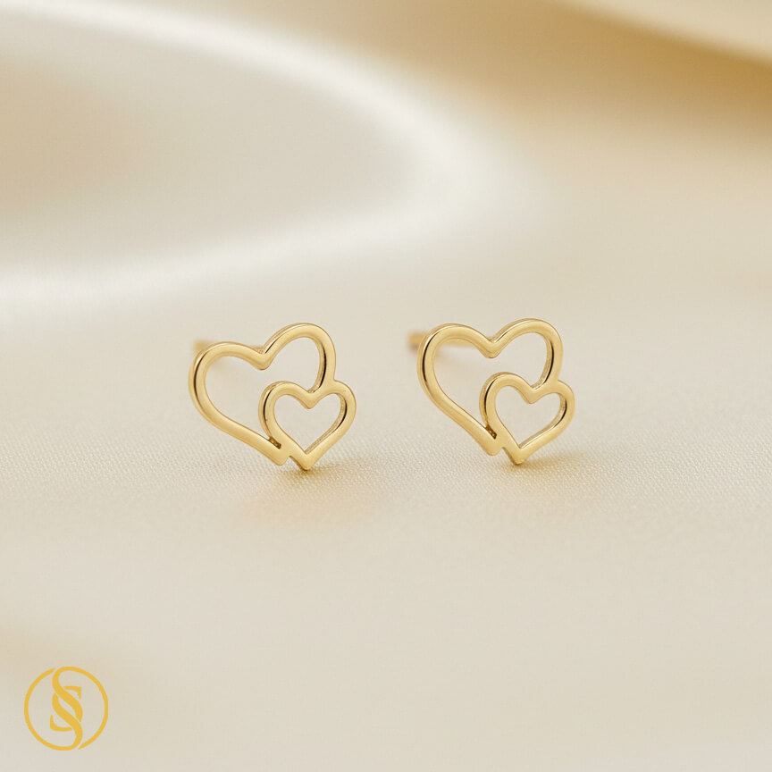 گوشواره طلا میخی قلب توخالی بزرگ و کوچک